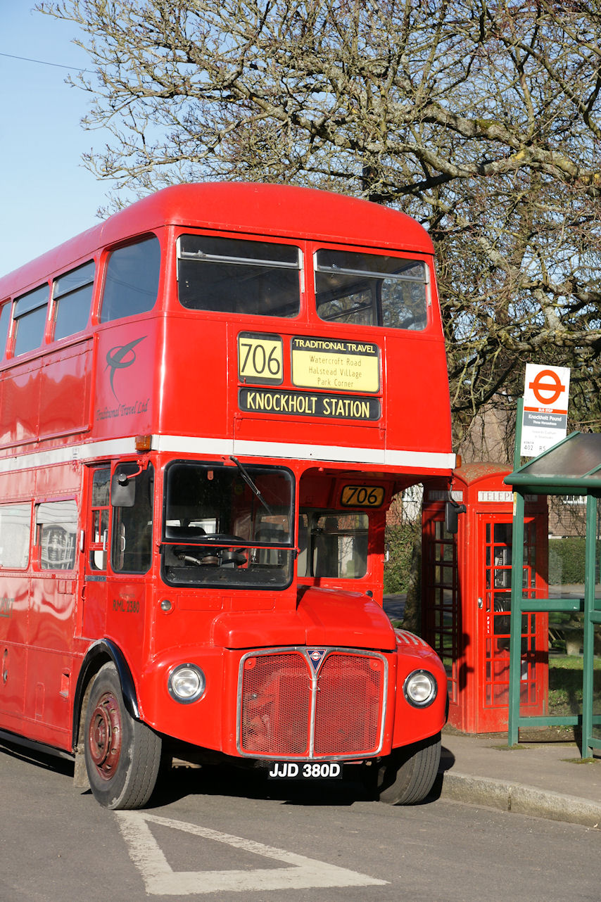 The new commercial Routemaster operation, route 706, takes to the roads from March 13th , 2011. Illustrated is RML2380 at Knockholt Pound fitted with our blinds.