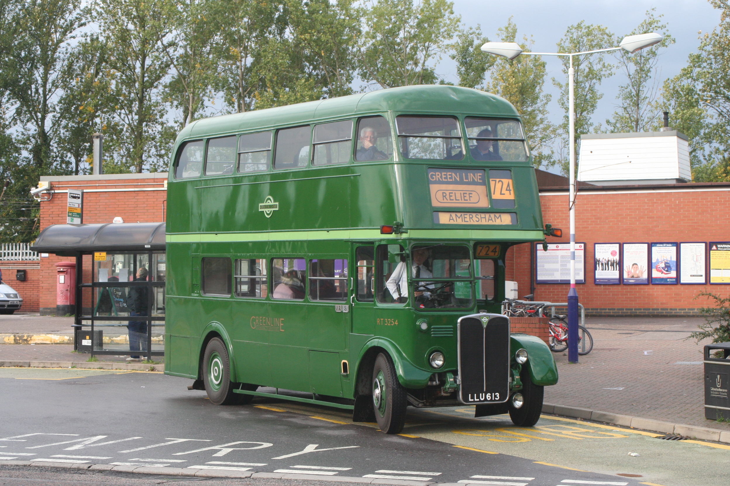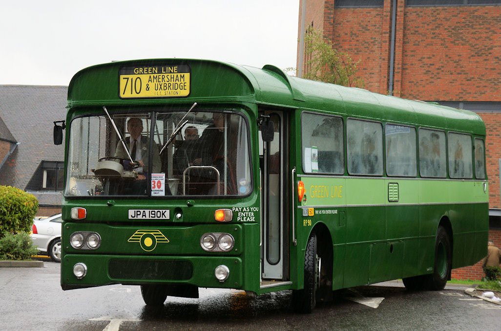 RT vehicle displaying 1960s 'amber' style destination blind 'AMERSHAM' on paper, for workings on route 724 at the 2010 Amersham Running Day.